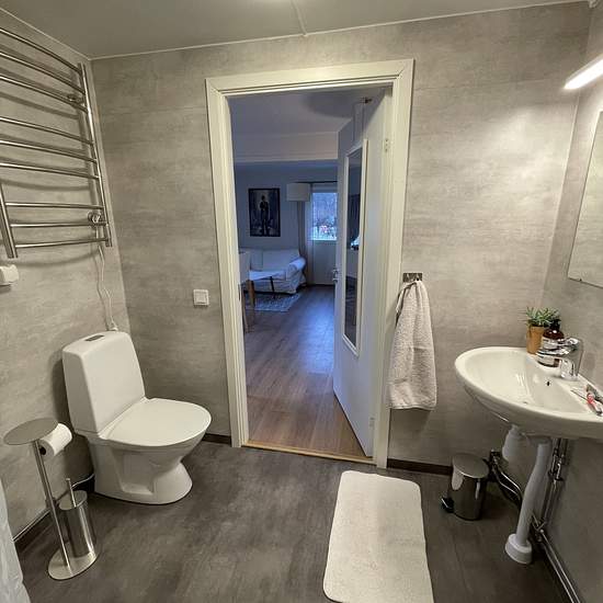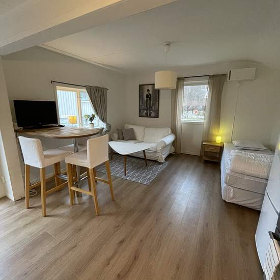 Furnished one-room apartment for rent. Fully furnished, newly built kitchen and bathroom. Patio, washing machine. One parking space included. Service fee for tenant: 329.