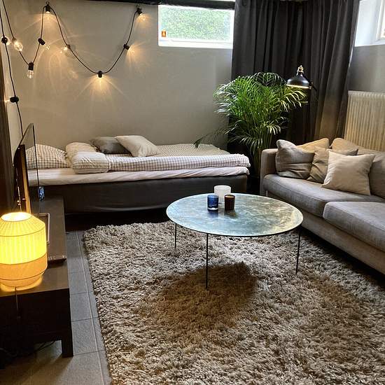 Available April 1: For rent for a longer period, until further notice… Newly renovated studio in my basement in a quiet residential neighborhood in Käglinge, which is the first community south of Malmö before Oxie. - Perfect for a student or a weekly commuter! Close to a bus stop for two different bus lines to Malmö Central and within cycling or walking distance to Oxie Pågatåg station and Oxie center. There is most everything there… ICA, Willys, Coop, 2 gyms, etc. The Pågatåg runs directly to both Lund and Malmö and the first stop, Hyllie, ...