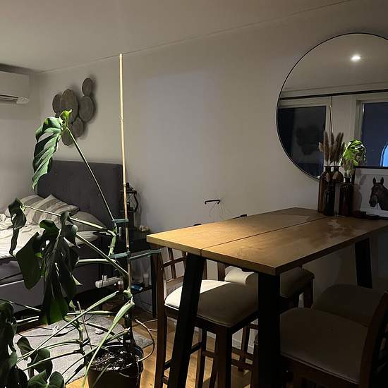 Nice small apartment in a quiet area. Good bus connections. Electricity, water, garbage. Snow removal is included in the rent; Wi‑Fi is not. Income requirement. Service fee for the tenant: 297.