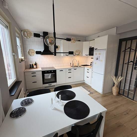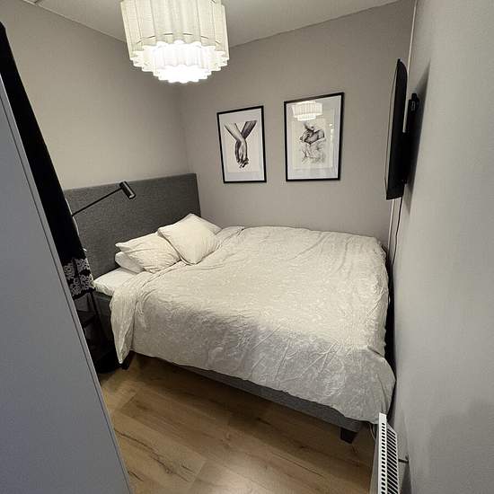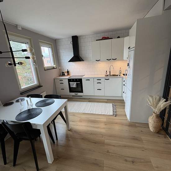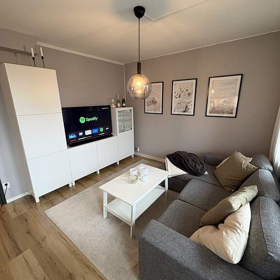A small, cozy 1.5-room apartment of 37 sqm on the top floor with no direct view into the apartment and a balcony. The apartment has been renovated so there is a small separate bedroom with a 160 cm bed, wardrobe and a 43-inch smart TV. The apartment is very open with the living room and kitchen in the same space. The living room has a 3‑seater sofa with chaise and a 50‑inch TV with Apple TV that you can log into. The kitchen is fully equipped with a dishwasher and all the appliances and accessories a kitchen should have. There is a nice dini...