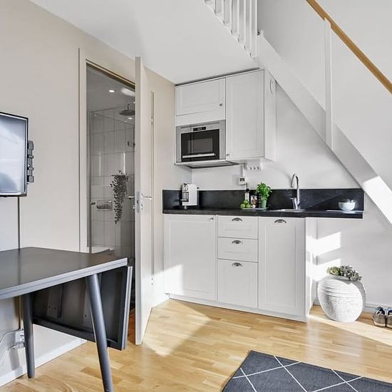 Modern surface-efficient apartment on scenic Wenngarn is rented long-term. Suitable for those who work at/from Arlanda or between Stockholm and Uppsala. Very recently, JENSEN has also started a high school in the area. The apartment is fully furnished and equipped with induction hob, fridge, underfloor heating in the bathroom, heated towel rail, dimmable ceiling lights, etc. The smart sofa bed can be set in many different positions. A suitable bed mattress is included which is placed on the sofa bed when it is to be used as a bed (140 cm). T...