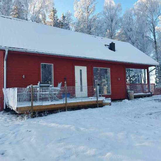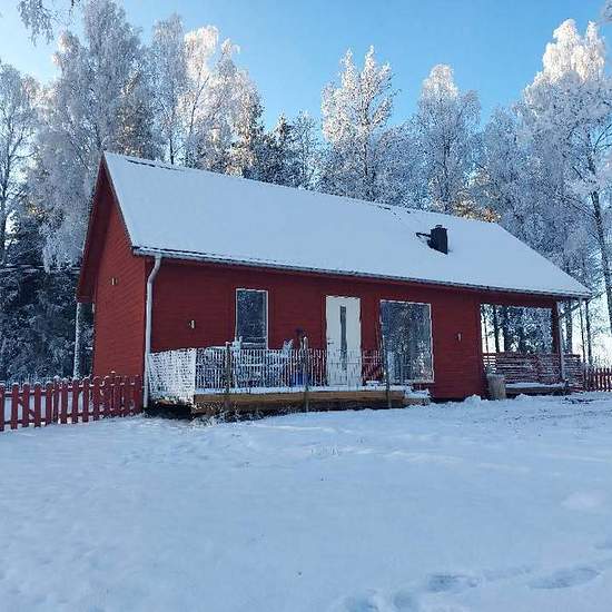 Red cottage on an elevated plot with a lovely view close to town for rent 6 km east of Skillingaryd. All amenities including a wood-burning stove, washing machine, dishwasher, fridge/freezer, two terraces and room for gardening. Open-plan layout with a loft. For rent from 1 May 2026 until further notice.