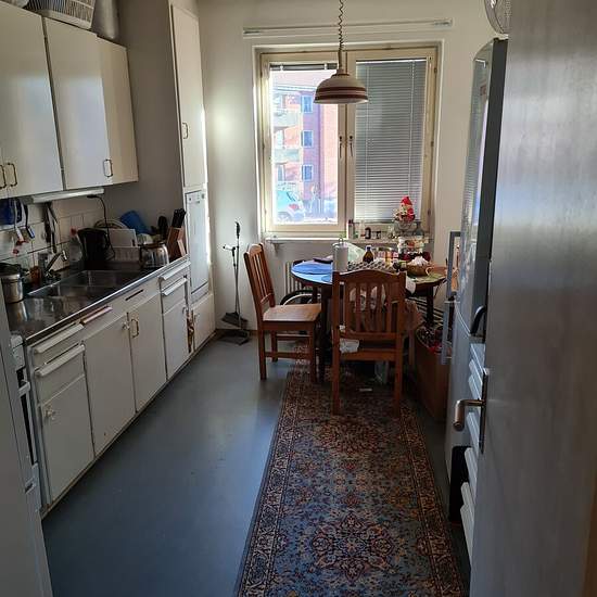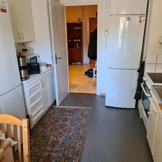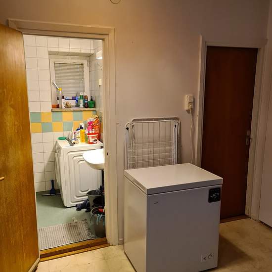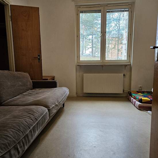 Room in a three-room apartment in a quiet area with a bus stop 100 m away; buses go to Södertälje C or Östertälje, with a connection to the commuter train. There is a bathroom with a toilet and an extra toilet, and a kitchen with access to dishes, cookware, a refrigerator and a freezer. The room is unfurnished but I have sent pictures of one of the other rooms; I do not have pictures of the current room now. Service fee for tenant: 220