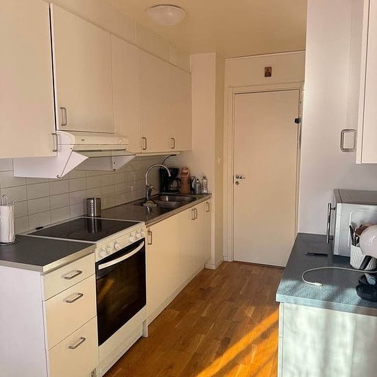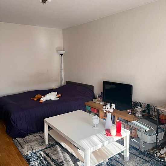 Furnished 1-room apartment, 41 sqm, with separate kitchen & bathroom. Common laundry downstairs. 3rd floor, no elevator. One month deposit and one month advance rent. One month notice period for both parties. It's for long term. Please send me messages with your short description and I will call back later. I can't answer calls immediately due to my work. Apartment is on Fjärilstigen, Södertälje street. Parking 500 SEK. Electricity & internet not included! You can rent the whole apartment or share with one person and split the rent! Apartmen...