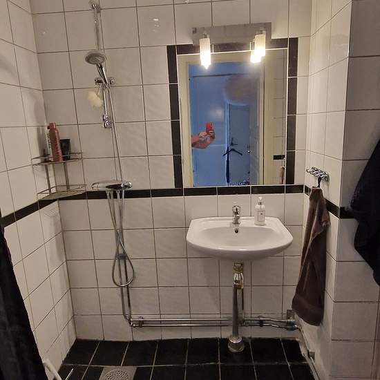 1-room apartment (35 m²) with lake view for rent on an open-ended lease with 3 months' notice. Partly furnished: 140 cm bed, sofa bed, and large sliding-door wardrobe. Private bathroom, private entrance. Water, heating, Wi‑Fi and electricity included; household electricity up to 200 SEK per month. Deposit: one month's rent (9,000 SEK) payable before move-in. Available from Nov 1 or by agreement. Service fee for tenant: 535 SEK
