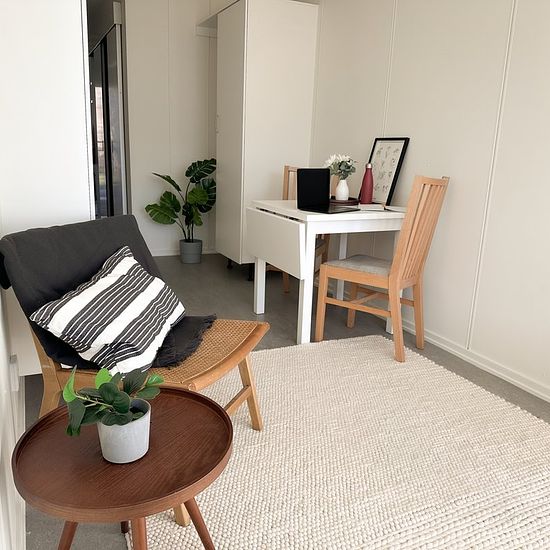 Badrum med duschplats Brandlarm Förråd finns inte Korttidskontrakt Tvättstugebokning via webb/tavla Ungdomsbostad