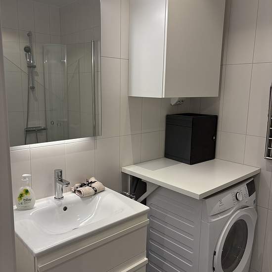Bli första person på nyproducerad lägenhet på 25 m² (1 rok) i Solna. Lägenheten ligger i den nya stadsdelen, Huvudsta Strandpark. I den nya stadsdelen bor du nära natur, bakom kullen är det Bällstaviken - en oas av grönska. Det är bara 600 meter till Huvudsta Tunnelbana Station och Centrum med mataffärer, vårdcentraler och gym. Med cykel tar du dig snabbt till Sundbyberg centrum för shopping och nöjen. Bromma Blocks erbjuder också ännu fler shoppingmöjligheter. Det charmiga vardagsrummet erbjuder en trevlig atmosfär för avkoppling. Med fön...