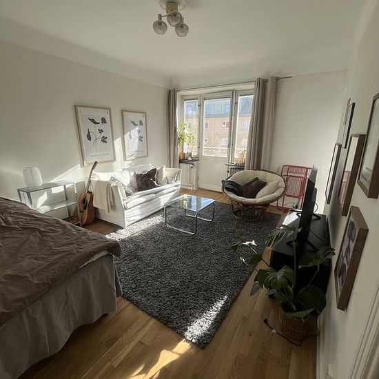 Hej! Hyr ut min lägenhet i Råsunda på 36 kvm då jag jobbar på annan ort. En ljus nyrenoverad etta med balkong i söderläge. Nära till både buss, pendel, tvärbana och t-bana. 5 min till t-bana Solna centrum. I hyran ingår: el+vatten Ingår ej: bredband/internet. Finns tvättstuga i huset. Serviceavgift för hyresgäst: 595