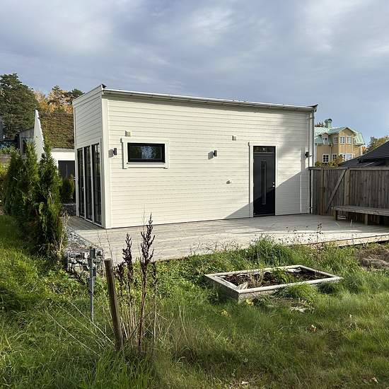 Close-to-nature Attefall house with a secluded southwest-facing outdoor patio and private parking. Open floor plan with a sleeping loft. Dishwasher and washing machine are available. Within walking distance to the sea and Stenhamra center with facilities such as Coop, a bakery and a gym. Living area: 23 sqm excluding the sleeping loft. For rent until further notice. Service fee for tenant: 535