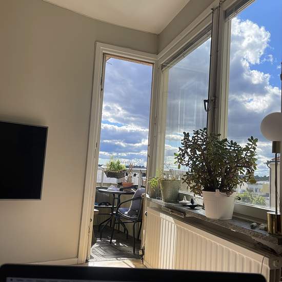 Really nice apartment on Lilla Essingen. Top floor with a fantastic view. I will be living in the apartment myself but have positive experience of having a lodger and being a lodger. You will sleep either in the bedroom or in the living room. We'll have to discuss that. In the living room there is a large sofa bed that is really comfortable, although it is quite bright here due to large, wonderful windows with lovely light (for better or worse). I myself work quite a lot, sometimes at an office, partly from abroad but sometimes from home. I...