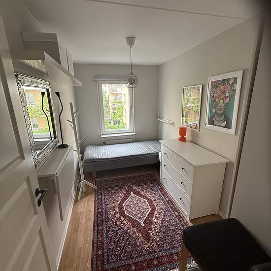 Centralt rum på Södermalm. Du erbjuds att bo i en egen del av bostaden. 1 min till pendeltåg 3-4 min till grön linje Medborgarplatsen /röd linje Mariatorget. Du är inneboende i en lägenhet med ytterligare en hyresgäst + hyresvärden som heltidsarbetar. Du har även en heltidsstudier. Hela lägenheten är på 92 kvm och du delar kök och duschrum. Anledningen till uthyrning är att mina barn flyttat hemifrån. El/vatten/internet är inkluderat i hyran. Sovrummet innehåller skrivbord, säng garderober. Deposition en månadshyra. Hyran betalas i fö...