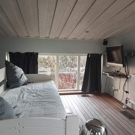 Uthyrningsdel 39 kvadrat hyra ca 8000kr Från Norrviken pendelstation tar det bara 19 minuter in till Odenplan. Du kan ta en direktbuss dit från villan på 5 minuter, eller cykla på ungefär samma tid. Rummet, som i grunden är ett poolrum, passar för till exempel ett par och används idag som en i princip separat lägenhet med egen kokvrå, soffa och sovdel inklusive egen uteplats på en högt belägen tomt som bjuder på vacker utsikt och sol under hela dagen. Mer info: