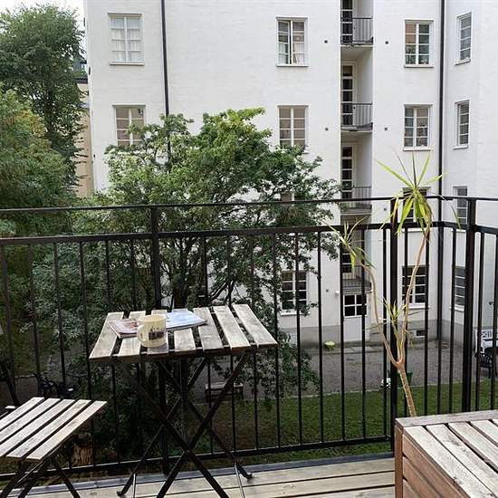 1 rum och kök på Södermalm, Sofo, nära till Skanstull 35 kvm, med balkong Lugnt område i Sofo med fönster in mot gården och fin balkong med sol på eftermiddagen. Lägenheten är nymålad, har högt i tak och genomgående trägolv. Bostaden hyrs endast en stillsam och rökfri hyresgäst, huset är en rökfri fastighet. Inga husdjur pga allergi. Lägenheten hyrs ut möblerat: säng, sängbord, köksgeråd, köksbord, stolar, spis med två kokplattor och ugn, samt balkongmöbler. Bra förvaring i lägenheten med garderob och klädställning. Rymligt badrum. Wi...
