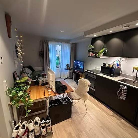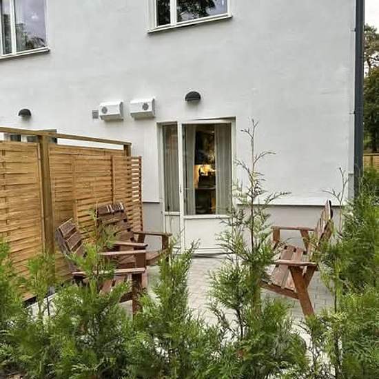 Hej! Hyr ut min nybyggda etta i Vällingby från och med slutet av Januari - tillsvidare - 19kvm + stor uteplats (möblerad) - 5 min från tunnelbana, simhall och Vällingby C samt Grimsta Naturreservat ett stenkast bort (dvs allt du kan tänkas behövas finns i närheten) - Diskmaskin, ugn, Wi-Fi och golvvärme i badrummet samt larm finns (kan styras med telefonen) och sängen/soffan ni ser på bilden kan dras ut till en 160 säng och har förvaringslådor (Hemnes säng från Ikea) - Tillgång till stort förråd - Möjlighet att skriva sig på adress...