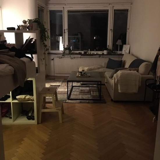 30 m² on the 6th floor with balcony. Large room with a small kitchen/kitchenette. Functionalist building, parquet floors, generally OK condition. For rent with a three-month notice period, ongoing tenancy. Security door, at most 5 minutes to the subway. Electricity, insurance or TV/internet are not included in the rent. NOTE! The apartment must be rented out ASAP and I intend to meet the tenant to show the apartment and hand over the keys this weekend. Service fee for tenant: 535
