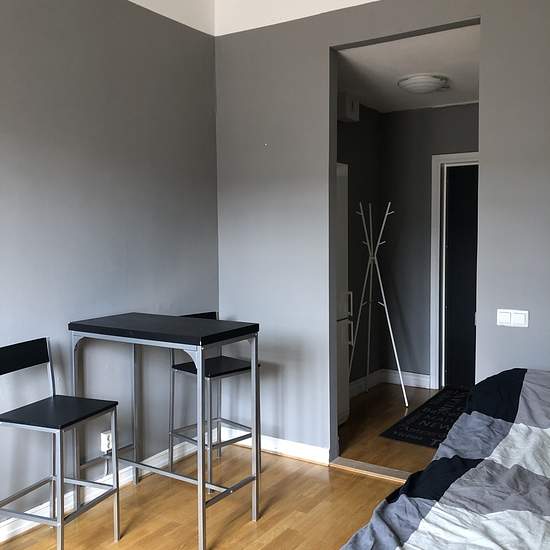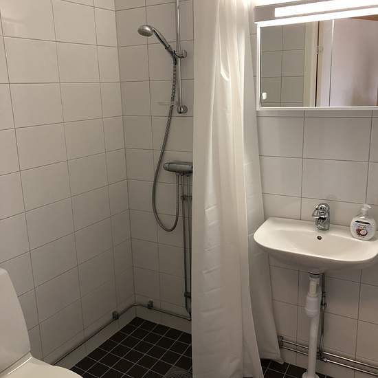 1 room with its own entrance and bathroom, so it becomes like your own apartment in a perfect central location! The room, which is rented to a quiet, well-behaved person, is about 15 sqm and does not have access to a fully equipped kitchen but is furnished with a refrigerator with freezer, microwave and kettle, making it perfect for, for example, weekly commuters. Furnished with a desk, chair, bed and chest of drawers, so there is the opportunity to further create your own atmosphere. There is also the possibility of other furniture such a...