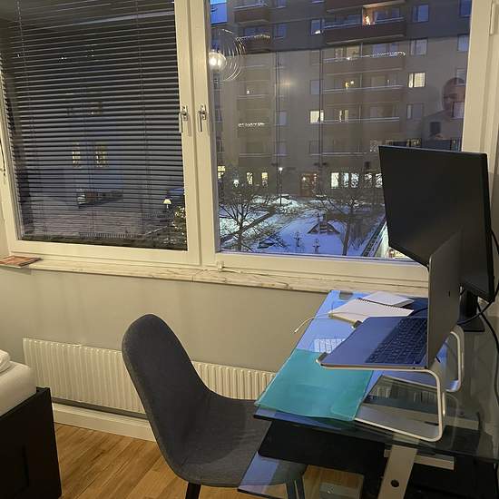 Very nice room in a 100 m² apartment centrally located in the fantastic Kungsholmen. Close to public transport at Fridhemsplan (subway and bus). Lots of shops in the area and lovely walks — only 50 m to the waterfront promenade and a 10-minute walk to Stockholm Central. The room has a comfortable 160 cm double bed, a desk and a large wardrobe. You will have access to your own bathroom and a fully equipped kitchen. Everything is included: Wi‑Fi, water, electricity and a very good laundry room. This is a very comfortable and well-planned room ...
