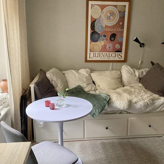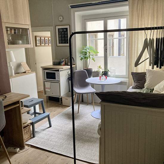 Looking for a weekly commuter who needs accommodation in Stockholm Sunday afternoon/evening–Friday afternoon/evening. Renting out a room in Gamla Stan with a private entrance and a shared bathroom. Please note that there are only basic cooking facilities in the form of a microwave, kettle, mini-fridge (space for breakfast items + a little more). Dishwashing may be done in the bathroom in the designated area. The room faces a small inner courtyard and is fully furnished with a 140 cm wide bed in a sleeping alcove as well as a sofa bed. TV wit...