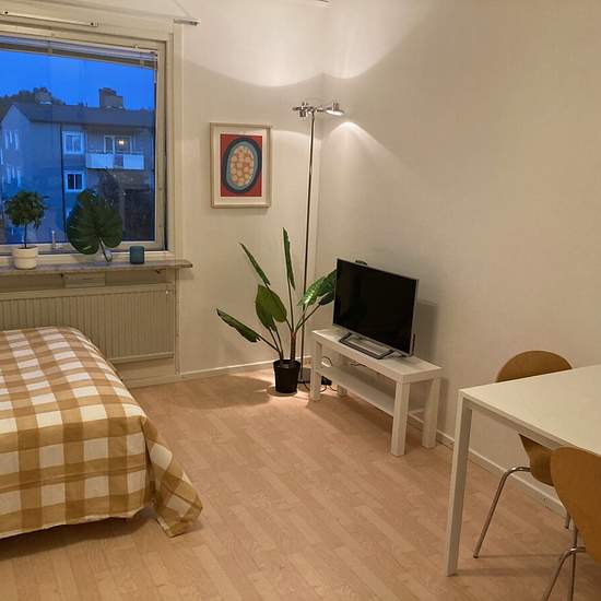 Fin nyrenoverad 1:a med dubbelsäng, matplats, kökvrå, badrum och hall med garderober uthyres möblerat. Parkeringsplats ingår liksom internet, TV, el etc. Serviceavgift för hyresgäst: 339