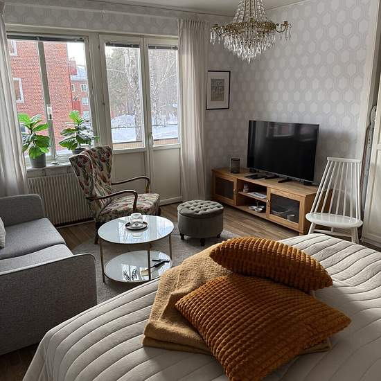 Mysig välmöblerad lägenhet med balkong mot centrum av Sundsvall ca 15 minuters promenad från Sjukhuset och ungefär samma avstånd till centrum. Mataffär och kvarterskrog i närheten . Flexibel inflyttning samt utflyttning men i första hand juni-augusti. Internet och tv med chromecast ingår. Serviceavgift för hyresgäst: 446