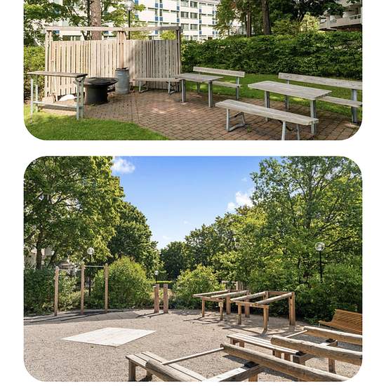 The apartment is located in Grindtorp, near the center of Täby. Here I describe more about the apartment. There is no private shower in the apartment. To shower, you need to use the gym card key to access the bathroom/sauna. The gym card, which I provide and which is included in the rent, is available. You can also use the gym with that card. The gym is located beneath the building. Service fee for tenant: 386