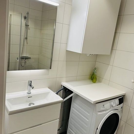 Modern apartment with glazed balcony – Täby Park A bright and modern newly built apartment located in the growing and attractive area of Täby Park. The apartment features a fully glazed balcony (completed by June 1st), which functions as an additional room, providing extra space, warmth, and a cozy atmosphere all year round. Apartment features: • Fully equipped kitchen • Fresh, all-white bathroom with washing machine and dryer • Continental bed • Walk-in closet • High-quality appliances from Electrolux • Full-coverage blinds for privacy, ...