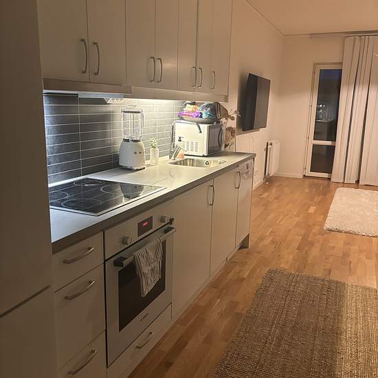 Welcome to a newly built apartment in a modern newly constructed property — a one-room apartment with a kitchen, a small outdoor patio off the gallery walkway and a French balcony. The apartment is painted white throughout with parquet floors. The kitchen has white cabinet doors, an induction hob with a built-in convection oven, fridge/freezer and dishwasher. The bathroom is tiled and equipped with a washer-dryer combo. The Hälltorps gård residential area, located in northern Trollhättan, contains 84 rental homes. Here you live close to na...