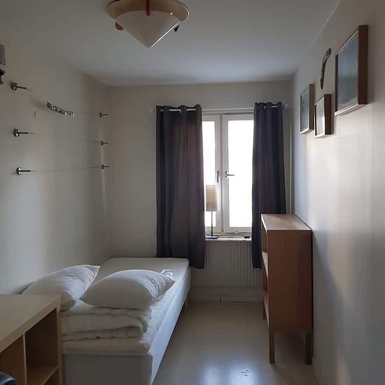 Hello! Room for rent in central Väsby We are renting out a room in central Upplands Väsby, a 3-minute walk from the station and a 5-minute walk from the centre. We are looking for a person between 18 and 30 years old who is tidy and responsible. It is important that you clean up after yourself in the shared areas. The room is in a four-room apartment that has two bathrooms, a kitchen, a living room and a balcony. There is access to a laundry room. You have your own cabinets in the kitchen and your own fridge with a freezer compartment. P...