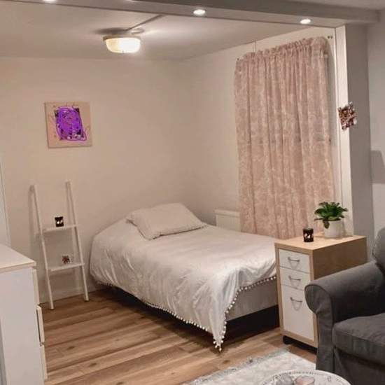 Apartment for one person (rental part of a villa) with a private entrance in a pleasant area, with walking paths, forest and nature right outside the door. A 10-minute walk to Vallentuna center. Close to public transport with the Roslagsbanan or buses to Stockholm city, Täby and Upplands Väsby. A 3-minute walk to the bus stop. Large bathroom with washing machine and shower. Partly furnished. For rent by agreement until further notice. 10,000 kronor deposit. Electricity costs are not included in the rent.