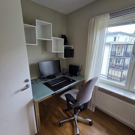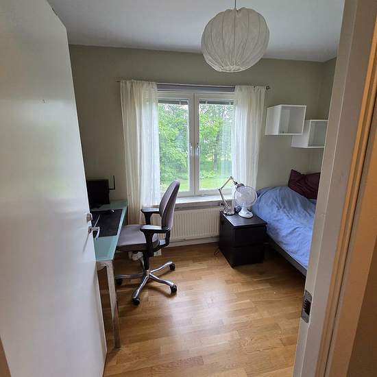 Hyr ut två rum, det ena är cirka 10 kvm och det andra cirka 15 kvm, allmän yta cirka 20 kvm så som pentry, korridor och farstu. De mindre rummet kostar 3 000 kr och det lite större 3 500 kr eller om man hyr hela delen med två rum, hall och pentry med badrum, 6 500 kr. Man delar pentry med spis ung, micro, kyl, frys och badrum med den andra hyresgästen. Man har delvis tillgång till hela lägenheten som är på 115 kvm. Dels när jag är ute och reser, vilket jag gör större delen av vinterhalvåret, sen när det passar oss båda. Lägenheten ligger i e...