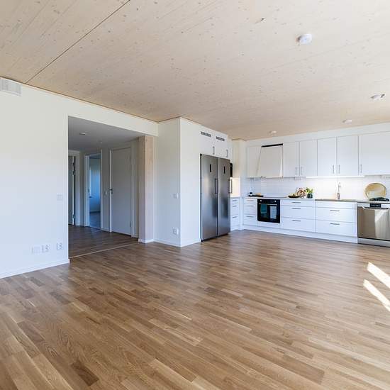 Bostad I hjärtat av Sävja växer Trähuset fram – ett klimatsmart boende byggt helt i trä, granne med naturreservatet Lunsen och med service som mataffär, apotek och skolor inom räckhåll. Fastigheten certifieras enligt Miljöbyggnad Silver och NollCO2, har solceller för egen el och återbrukade fönster. Här bor du i en ljus och välplanerad lägenhet med parkettgolv, vitmålade väggar och ett stilrent kök från Noblessa utrustat med diskmaskin. Badrummet är helkaklat och förberett för tvättmaskin. Innergård, cykelrum och modern tvättstuga gör v...