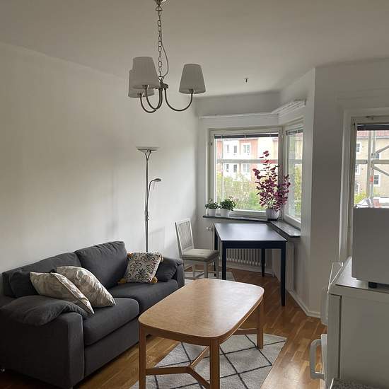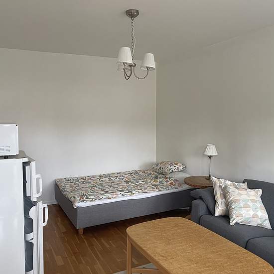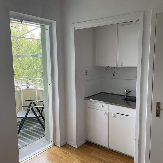 Description Room with a balcony facing the courtyard. The room is 17 sqm plus a hallway and bathroom. Private entrance/door. Equipment for basic cooking is available. For example, a sink, microwave and fridge/freezer. Service fee for tenant: 237