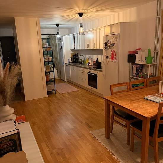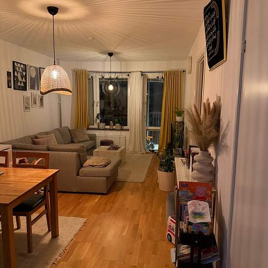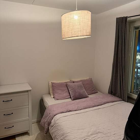 Hi! I'm looking for a female lodger for my 3-room apartment in beautiful Gränbystaden. It's a quiet and safe area. The room is furnished with a 140 cm bed. Preferably pet-free, non-smoking and alcohol-free. The rent includes broadband and a washer/dryer; there's also a dishwasher. You'll have access to the living room and balcony, and we share the electricity. Move-in date is negotiable. Service fee for tenant: 339