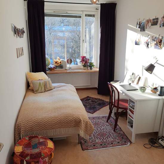 Hello, I am renting out a room (approx. 17 m²) in a three-room apartment at Täljstensvägen 9A, Eriksberg, in Uppsala (Bedroom 1 according to the floor plan/image). You will share the kitchen and toilet/shower with me and one other tenant (a 24-year-old Italian woman studying a master’s degree at Uppsala University). Bedroom 1: 3,800 SEK per month (approx. 17 m²) You can move in from June 6, 2024, as the previous tenant is moving out around that time with some flexibility. You can see the floor plan among the images, and I live in the livi...