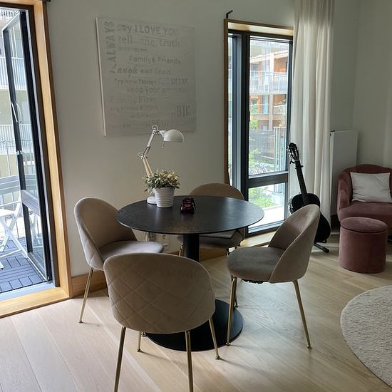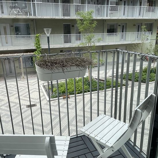 Cozy, newly built and modern 1-room apartment of 30 sqm for rent in Rosendal. The apartment is rented out furnished and for the period from September 1st to the end of the year. Fees for hot water and electricity are additional (usually around 160 SEK). However, water is included. Located just a stone's throw from Ångströms, BMC, and Science Park, about 10 minutes by bike from Uppsala Central with good bus connections. Both Hemköp and ICA are adjacent to the apartment. Simply a perfect location. Service fee for tenant: 504