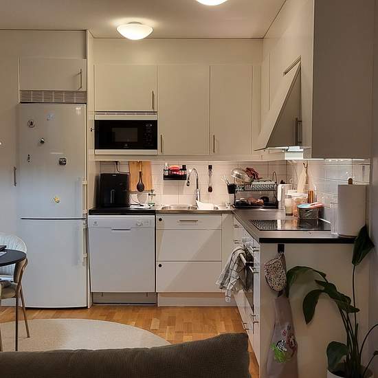 Lägenheten med 36 kvadratmeter som ligger precis Råcksta stationen, erbjuder denna lägenhet moderna bekvämligheter. Här har en liten kokvrå flyttas från hallen och byggts om till ett väl tilltaget arbetskök med en stor bänkskiva, diskmaskin kyl, frys, häll, ugn och med gott om förvaringsutrymme. Badrummet är stort med dusch, tvättmaskin wc, handfat och plats för hyllor och att hänga tvätten. Det fd pentryt har blivit en stor garderob i hallen. Med endast 10 minuters promenad till Vällingby centrum erbjuder lägenhetens placering också bra kom...