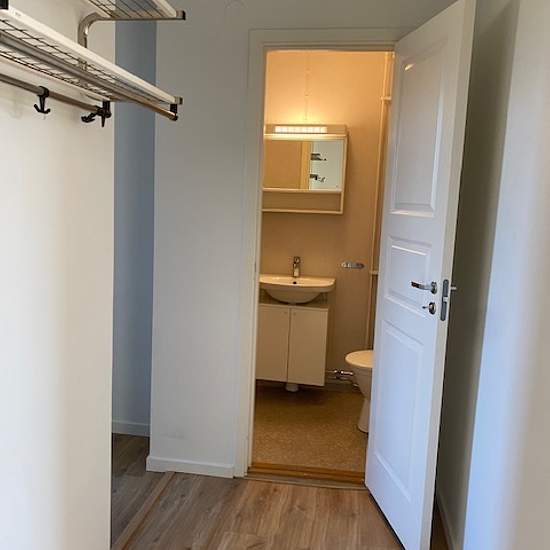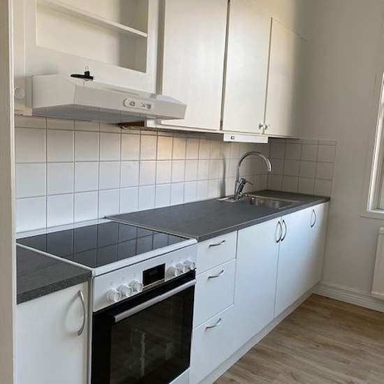 Apartment of 39 sqm located in central Vänersborg. The residence has white walls and wood floors, with windows in both the living room and the kitchen, providing good natural light. The kitchen is equipped with a stove and an extractor hood. The bathroom has a shower, toilet, and a heated towel rail. Close to services, public transport, and the city's amenities. One month's rent as a deposit. The apartment is available for immediate move-in.