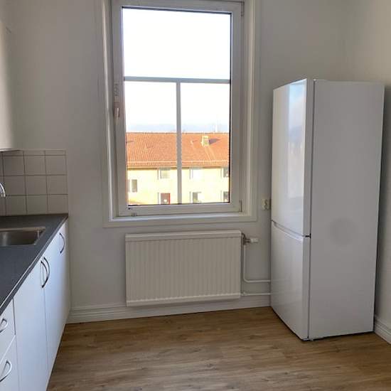 Apartment of 39 sqm located in central Vänersborg. The residence has white walls and wooden floors, as well as windows in both the living room and kitchen, which provide good natural light. The kitchen is equipped with a stove and extractor fan. The bathroom has a shower, toilet and a heated towel rail. Close to services, public transport and the city's amenities. A deposit of one month's rent. The apartment is available for immediate move-in.