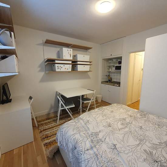 Possible to rent without a deposit through Samtrygg. Monthly cost: 6325 kr. ________________________________________________________________ The fastest way to book a viewing is by following this link to Samtrygg: Here you will also find more pictures and more information. ________________________________________________________________ Furnished studio with a central location near MDU, the Central Station and the city's selection of restaurants and shops. Kitchen cupboards with sink, 2 hotplates, fridge with freezer compartment, micro...
