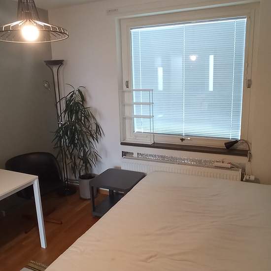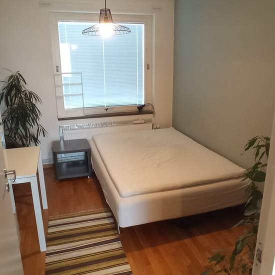 Since my current lodger is moving out in April, I am looking for someone new to share the apartment with. I am renting out a bedroom (Bedroom 1 on the floor plan) in our 115 m² five-room apartment. The room is furnished with a large bed and clothing storage, a bookshelf, a table and a chair. The bed is not made in the pictures but, of course, there are a duvet and pillows and everything. The furnishing can be adjusted if needed. Internet is available both wired and wireless. There are no additional costs for you as the tenant. You will of ...