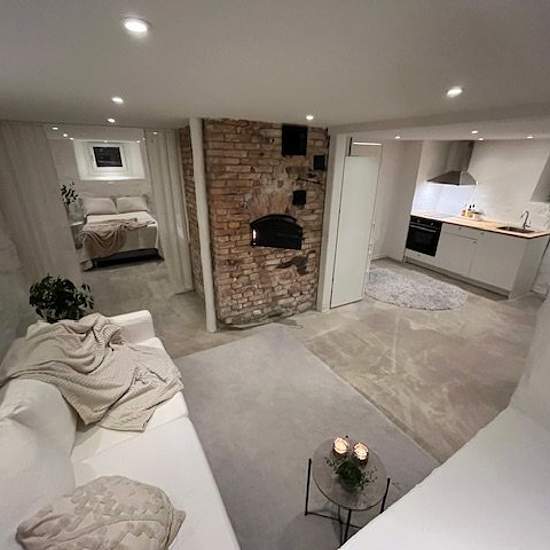 Nice newly renovated basement apartment in a quiet location with its own entrance for rent. Close to the sea, shopping and nature. Free parking with the option to charge (for an additional fee) is available. The apartment is laid out as a studio with a screened sleeping area for a more open feel, but it can easily be converted into a one-bedroom apartment if desired. A working baking oven is available that can be used for cozy fires or extra heat if you want. Electricity, heating, water and internet are included in the rent. rent: 10 285 SE...