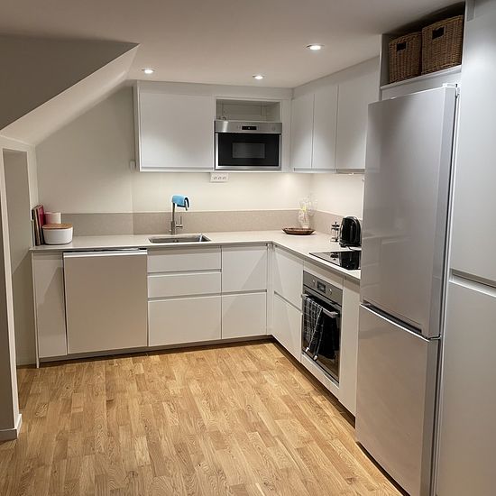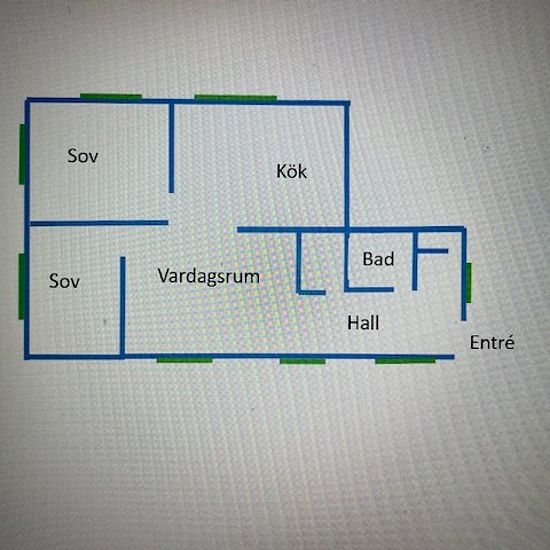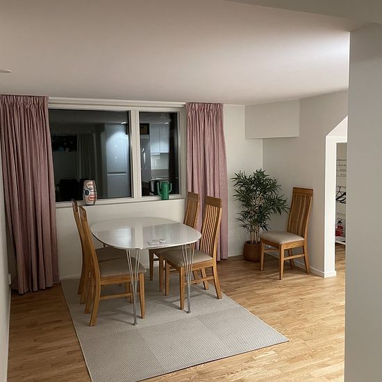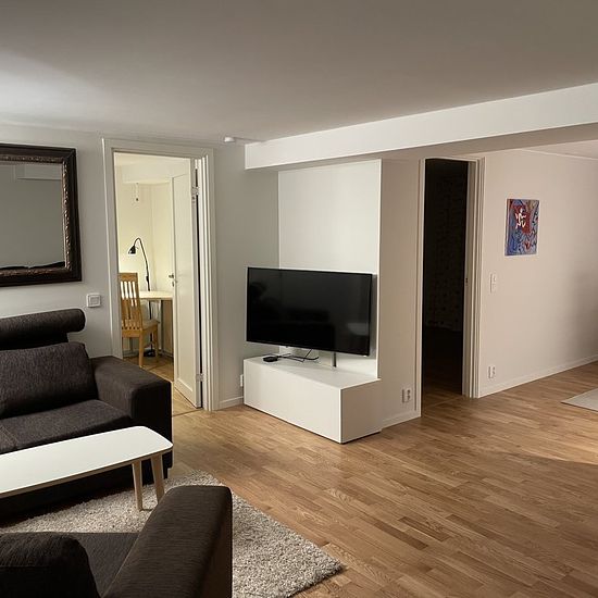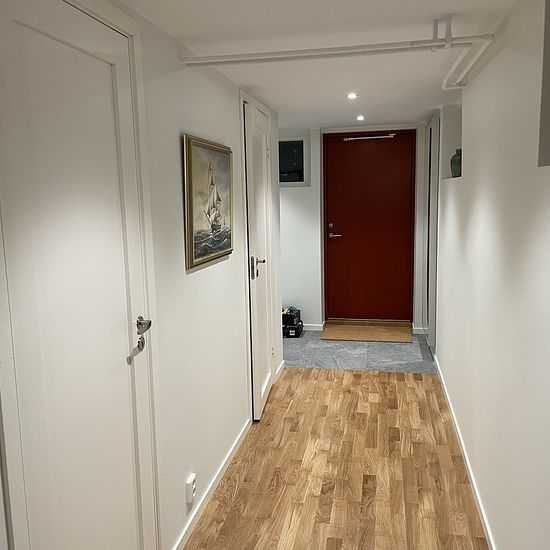 Room of 8 square meters in a brand new apartment on the ground floor measuring 70 square meters. 3 rooms and kitchen, of which two are bedrooms. Living room, kitchen, and bathroom are shared with another tenant who rents the larger bedroom. The rent applies to the smaller room which is furnished. Waterborne heating is available throughout the apartment and the heating is included in the rent. 700 meters to public transport stop. Approximately 8 km bike route to central Gothenburg. Service fee for tenant: 386