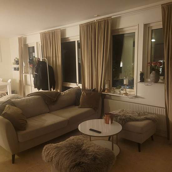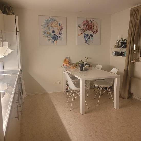 This is a very nice and cozy apartment with lots of windows! Hall: Light beige floor covering, white walls, cleaning closet. Bathroom: Light floor and wall covering, shower. Kitchen/living room: Light beige floor covering with white walls, spacious area by the kitchen section with room for a dining table. The living room section has a sleeping alcove with a built-in wardrobe. See attached floor plan and photos of the apartment!