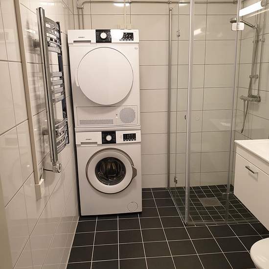 This apartment has been recently renovated — i.e., completely renovated about a year ago! New and modern kitchen with stainless-steel appliances, laminate countertops and an induction hob. Dishwasher and microwave. The flooring is parquet and the walls will be painted white. New, fully tiled bathroom with a vanity unit and basin, a glass shower corner and underfloor heating. Washing machine and tumble dryer. See attached example pictures!