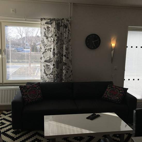 Hello! The apartment is 41 sqm, within walking distance of central Visby. A stone's throw from Visby's city wall, about 5–8 minutes to the town center. It accommodates 4 people, distributed between a 160 cm double bed and a sofa bed. Bright, fresh apartment with white-painted walls, light parquet flooring and a sleek kitchen. There is a fully equipped kitchen, dishwasher, washing machine and tumble dryer. The apartment is on the ground floor in a quiet, non-smoking residential area with a locked entrance. Pets not allowed Smoking not allo...