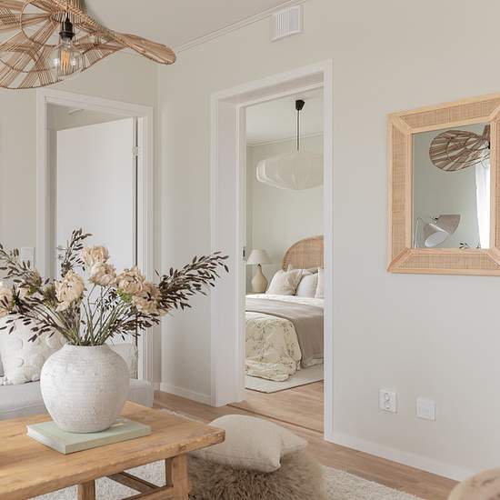 Welcome to a space-smart home. In this open-plan apartment it’s easy to feel at home. At the hallway entrance we have laid practical tile flooring to catch dirt from shoes when you’ve been out. The walls are painted white and the floors are oak parquet from Kährs, which contributes to a nice flow of light and a good base for furnishing. The apartments feature a bright, stylish kitchen from Marbodal. The kitchen is fully equipped with appliances such as a dishwasher, fridge and freezer, plus a microwave, oven and stove with a ceramic hob. The...