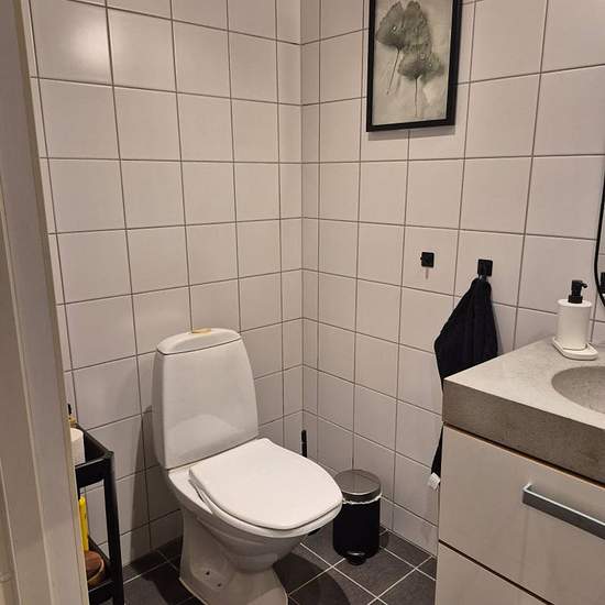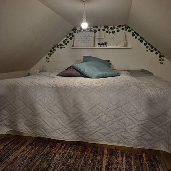 Separate cottage of about 45 m² located on our plot in Åkarp. Rented unfurnished. One large room of about 35 m² + sleeping loft Tiled floor in the kitchen, fully tiled bathroom. The kitchen has a washing machine and tumble dryer, combined fridge/freezer (2024) and oven/stove (2025). The kitchen was refreshed in 2025 when the countertop and faucet were replaced, a splashback was installed and the walls were painted. Heating is via waterborne radiators and an air-source heat pump that also provides AC. Private patio with privacy screening....