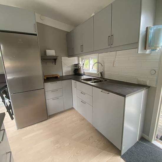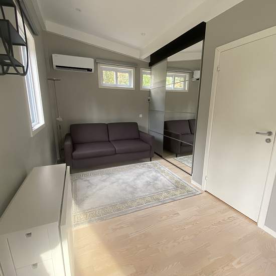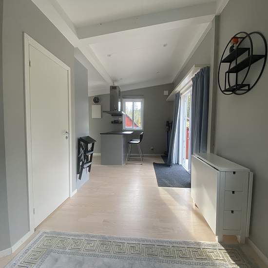 Nice Attefall house of approx. 30 m². Large bathroom with washing machine. Kitchen area and living room combined. Sofa bed in the living room, drop-leaf table and 2 bar stools for the kitchen area. Large patio with grill. Parking, electricity, water and sewage fees, and road maintenance are included in the rent. Electric car charging not allowed. Service fee for tenant: 326