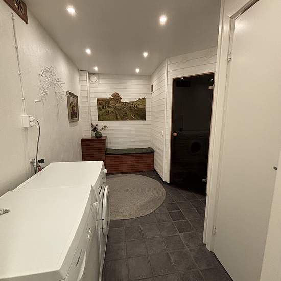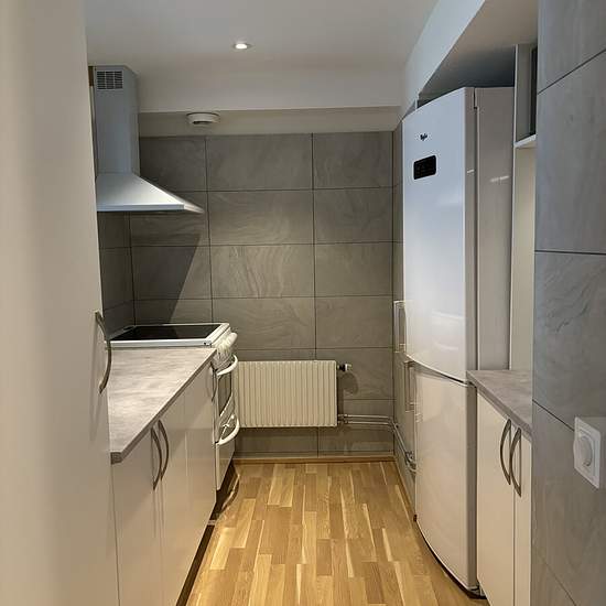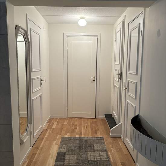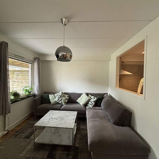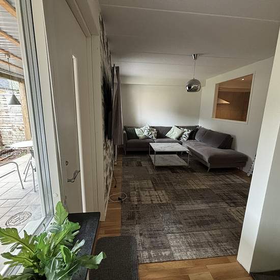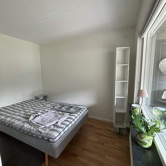 Fresh small apartment in the basement of a townhouse in a quiet area with its own patio and access to a garden. A 5-minute walk to both the grocery store and the bus stop. Service fee for tenant: 297