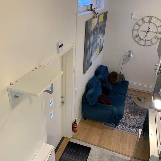 Hyr vårat attefallshus, 25 kvm + ett sovloft på 6 kvm. Högt läge med utsikt. Stor uteplats på ca 50 kvm. Huset hyrs ut möblerat, det är bara att flytta in. Huset består av ett kombinerat vardagsrum och kök. Kan också hyras omöblerat. Vardagsrum, LedTv och Wifi. Soffa och bord. Det finns matbord med 4 st svarta stolar. Köket är komplett med kyl/frys, kombi ugn och micro. Diskmaskin, kaffebryggare och vattenkokare och en brödrost. Komplett servis och husgeråd. Ovanför kök finns 4 st skåp för förvaring. Bibiotekstrappa finns för dessa skåp. Hal...